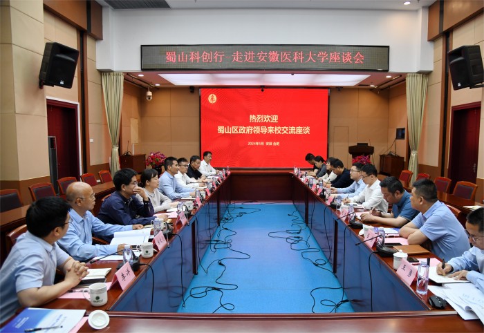 校科技产业处、党政办公室、发展规划处、医院管理处、资产经营公司、创新创业学院、第一附属医院相关负责人,蜀山区政府办、科技局、卫健委等单位负责人、蜀山科创集团相关负责人以及三里庵街道负责人等参加会议。(文/科技产业处 臧洪梅 图/校新闻中心 殷泽文)