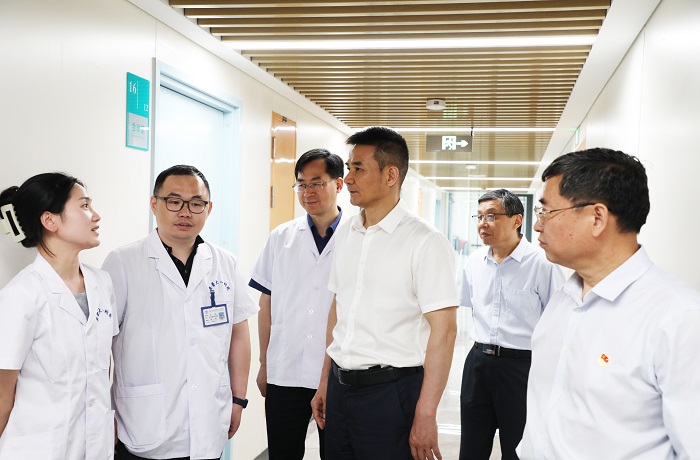 在一附院高新院区,王琦实地考察了高新门诊、消化内镜中心、安贞医院项目建设现场、脑科学研究院、临床技能培训中心及重点实验室,详细了解院区发展情况、安贞医院项目建设情况及相关区域运行情况,并亲切慰问院区工作人员。