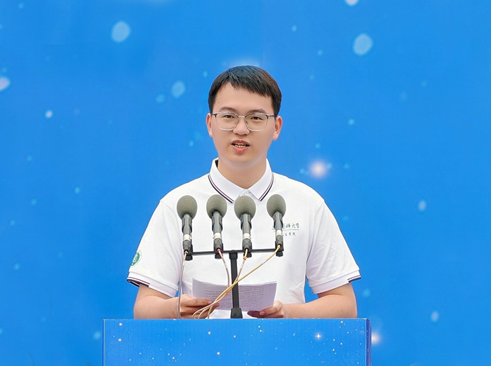 2024级临床医学专业张思齐作为本科新生代表发言,分享了学医的初心,也表达了从医的志向。她号召全体新生在安医大这片土地上,用奋斗实践赋予时间意义,用责任担当点亮青春风景,用仁心仁术救人济世,在医学道路上披荆斩棘,“医”路生花。