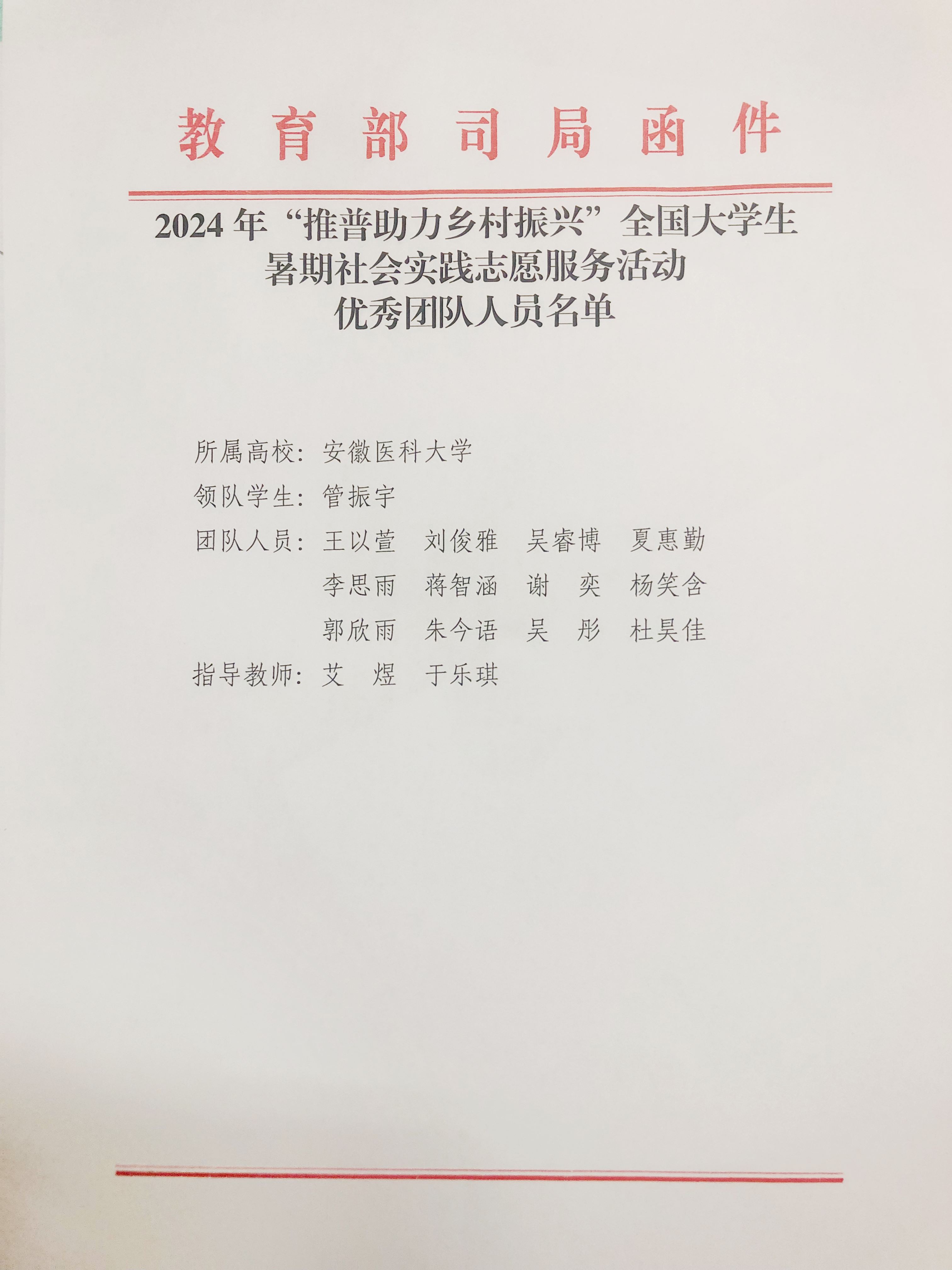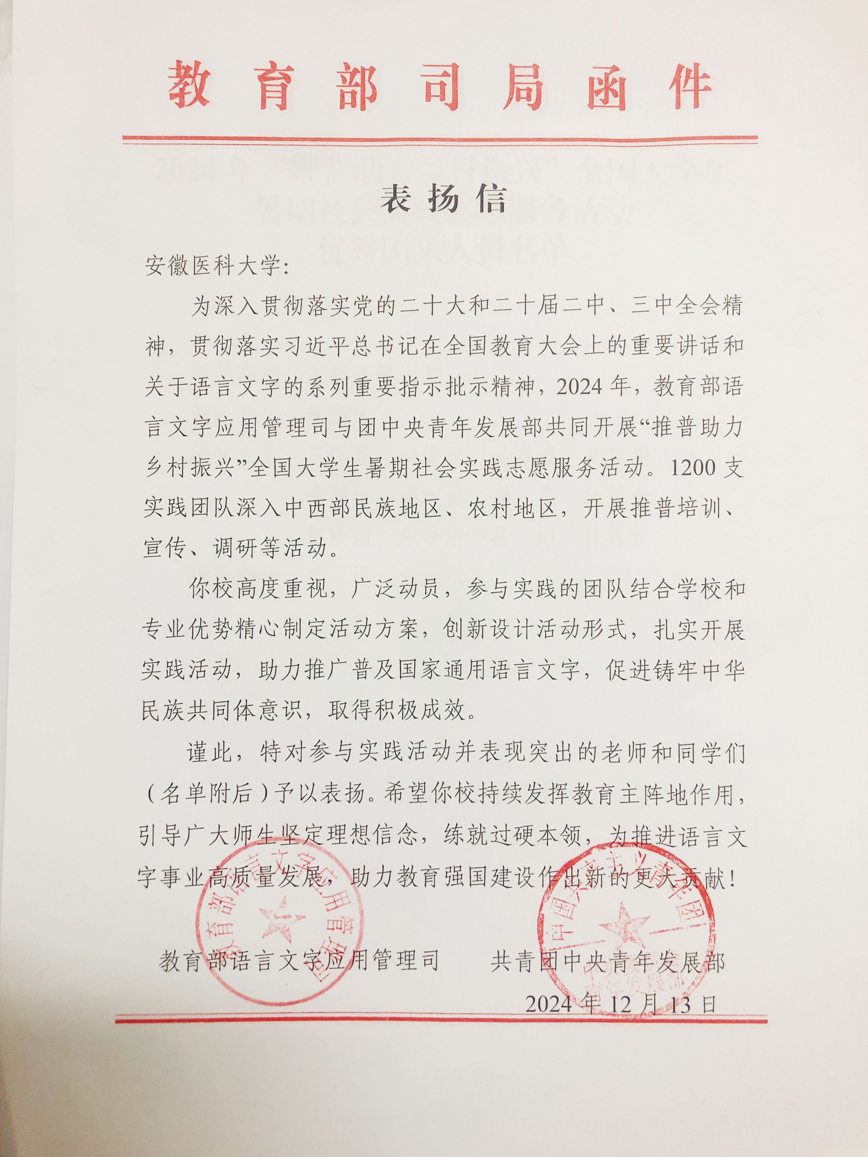 我校“三下乡”社会实践团队获教育部和团中央表扬