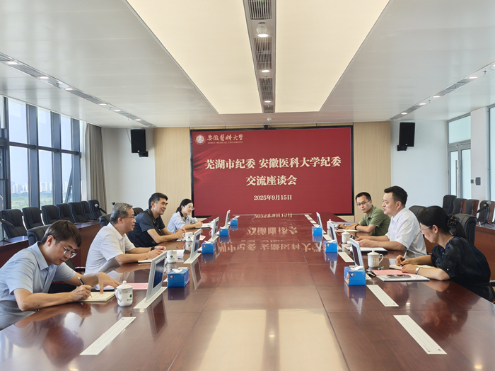 9月15日下午,芜湖市纪委监委来校开展指定管辖案件回访并调研交流纪检监察工作。会前,校党委书记王琦会见芜湖市委常委、纪委书记、监委主任吴祚麓一行。校党委常委、纪委书记、监察专员汪赵华出席并主持座谈会。